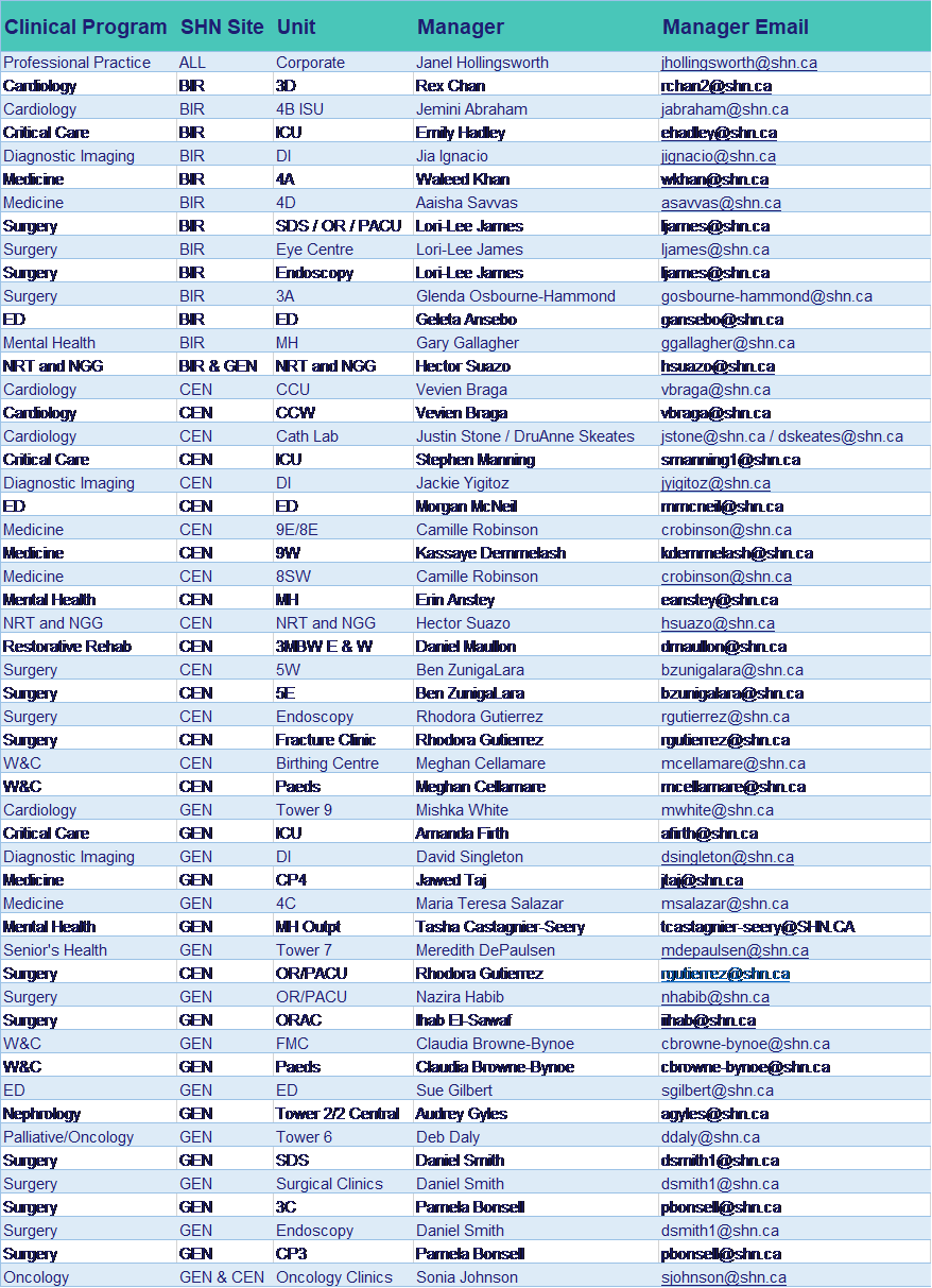 **For your reference, we have provided inpatient manger names and email addresses. Please ensure that you are entering this information correctly - this list is correct as of Jan 2024**