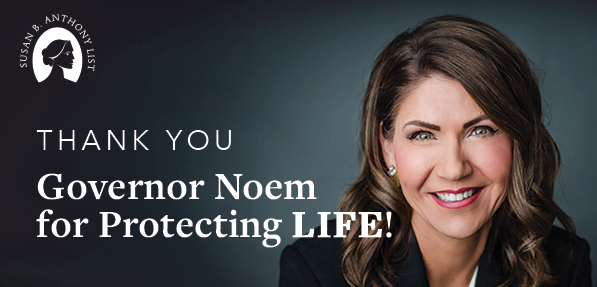 Please add your name to SBA List’s Thank You Card for Governor Kristi Noem as she prepares to sign her bill into law banning discriminatory abortion.