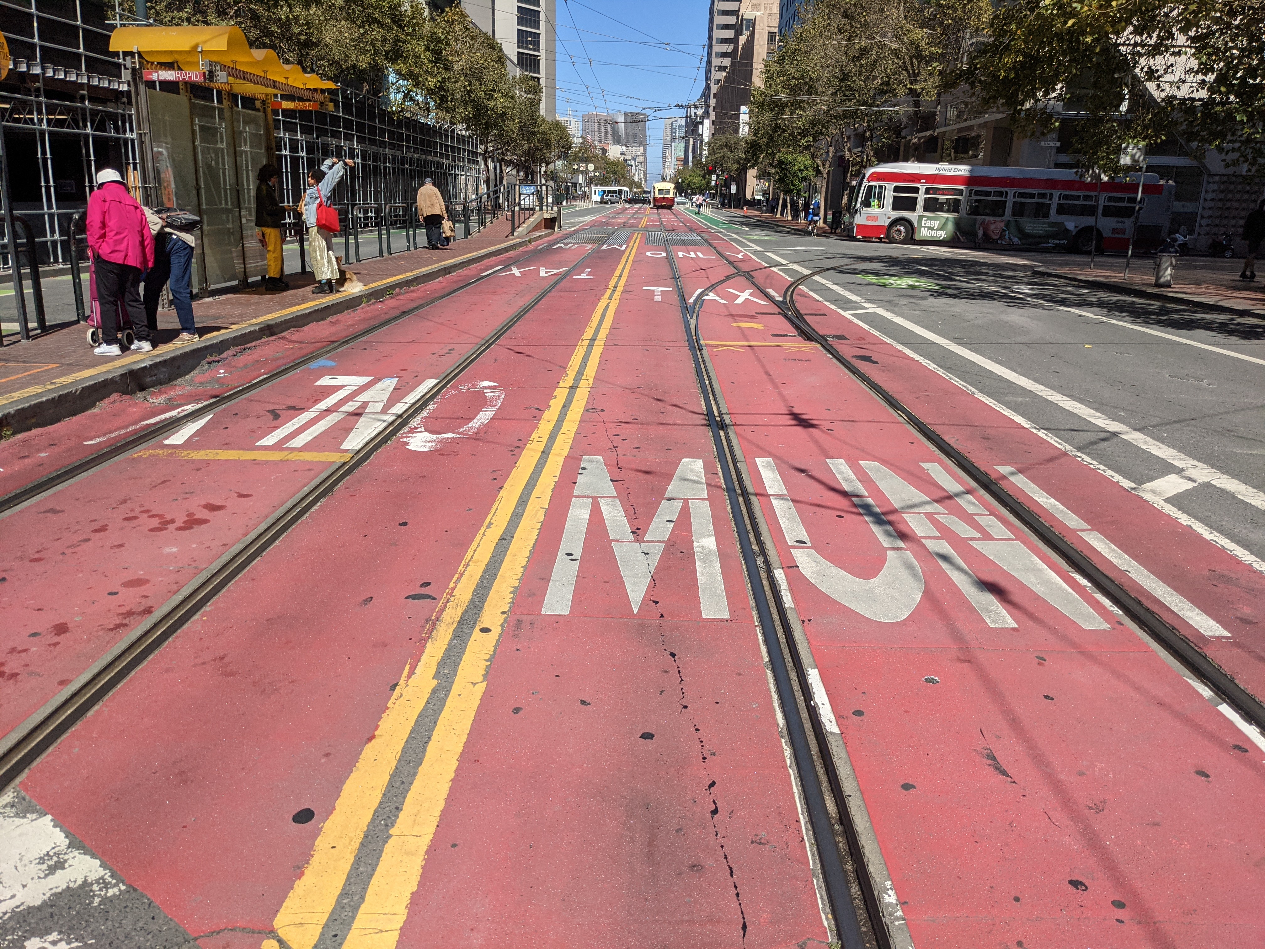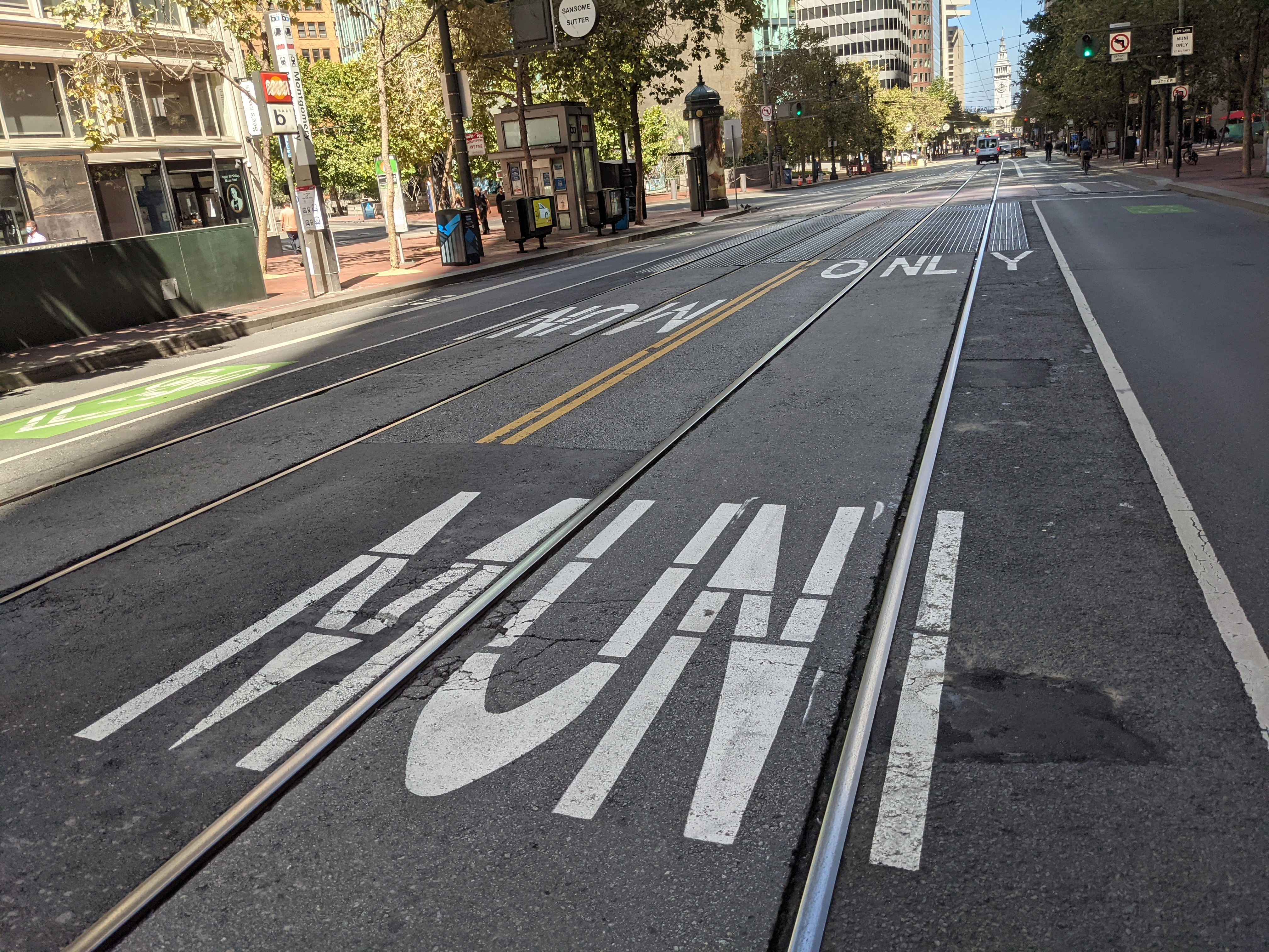 Esta encuesta busca comentarios de los taxistas que operan en Market Street. A los Taxis se les permite usar los carriles centrales rojos “ MUNI TAXI ONLY” en Market Street entre las calles 3 y 12, pero se les restringe el uso de los carriles centrales “MUNI ONLY” que se instalaron recientemente entre las calles 3 y Main.