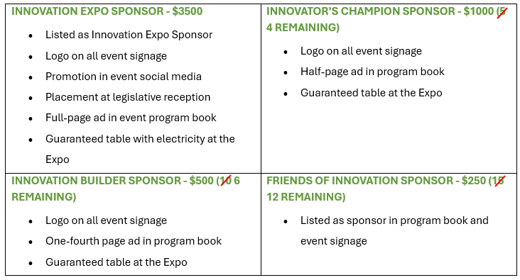 The OCAST Innovation Conference and Expo brings together Oklahoma’s entrepreneurs, innovators, investors, and industry partners to celebrate and advance innovation across the state. The Oklahoma City conference and expo showcases cutting edge technologies, emerging companies, and the collaborative spirit driving Oklahoma’s innovation economy. Attendees gain valuable insights from thought leaders, connect with key stakeholders, and explore opportunities that accelerate growth and impact. Sponsors receive statewide recognition and visibility among a highly engaged audience of business, government, and community leaders. Sponsorship levels include the following benefits: