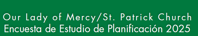 Our Lady of Mercy / St. Patrick ChurchPedimos a cada familia que tome de 5 a 10 minutos para completar esta encuesta y ayudar a dar forma al futuro de nuestra parroquia. ¡Gracias de antemano por su tiempo y participación!