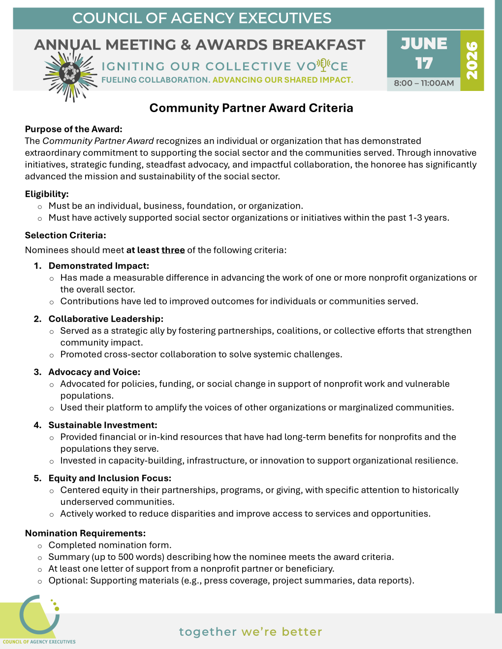COAE's 2026 Annual Meeting - Community Partner Award (Nomination Form)