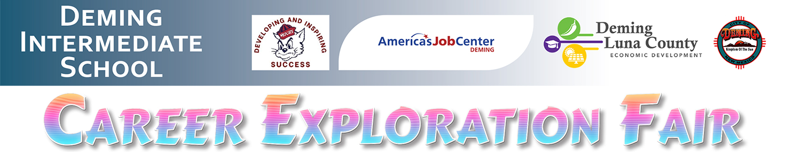 Deming Intermediate School, America's Job Center, Luna County Economic Development, and the City of Deming, are partnering to host the DIS Career Exploration Fair at Deming Intermediate School on Friday, May 1, 2026, at Deming Intermediate School, 1750 Pear St. in Deming, NM from 9:30 a.m. to 2:00 p.m